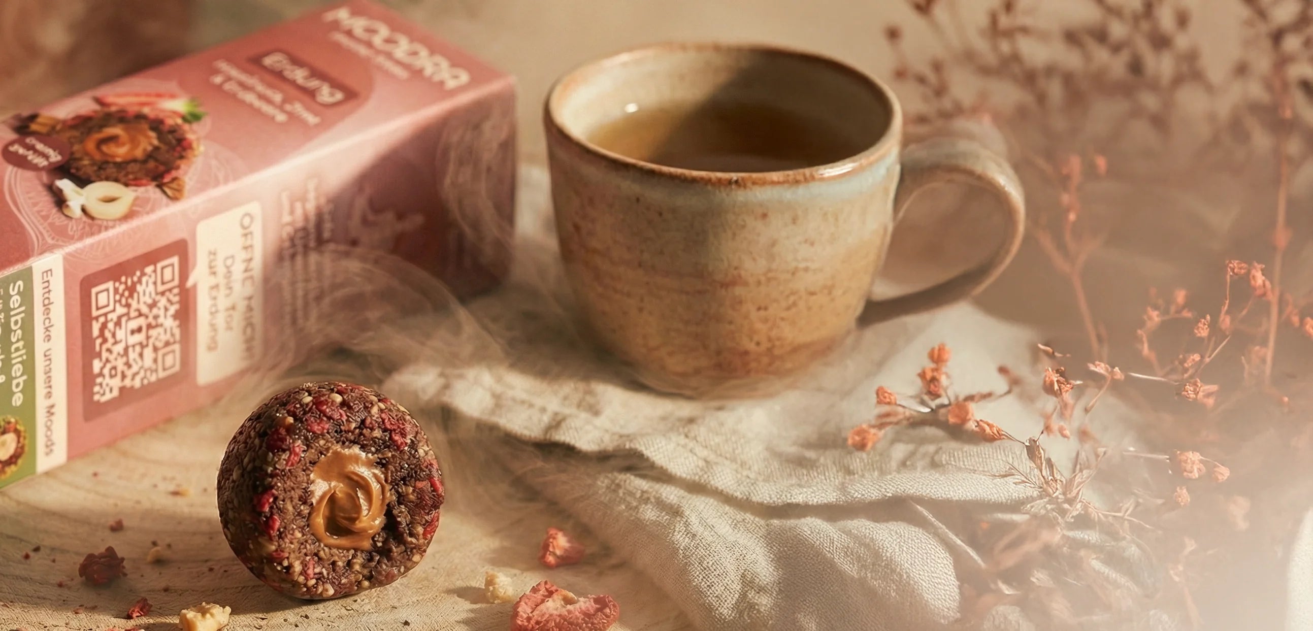 MOODRA steht nicht für schnelle Energie-Kicks, sondern für bewussten Genuss, der Dich sanft in Balance bringt – und Dir nachhaltig neue Kraft schenkt..